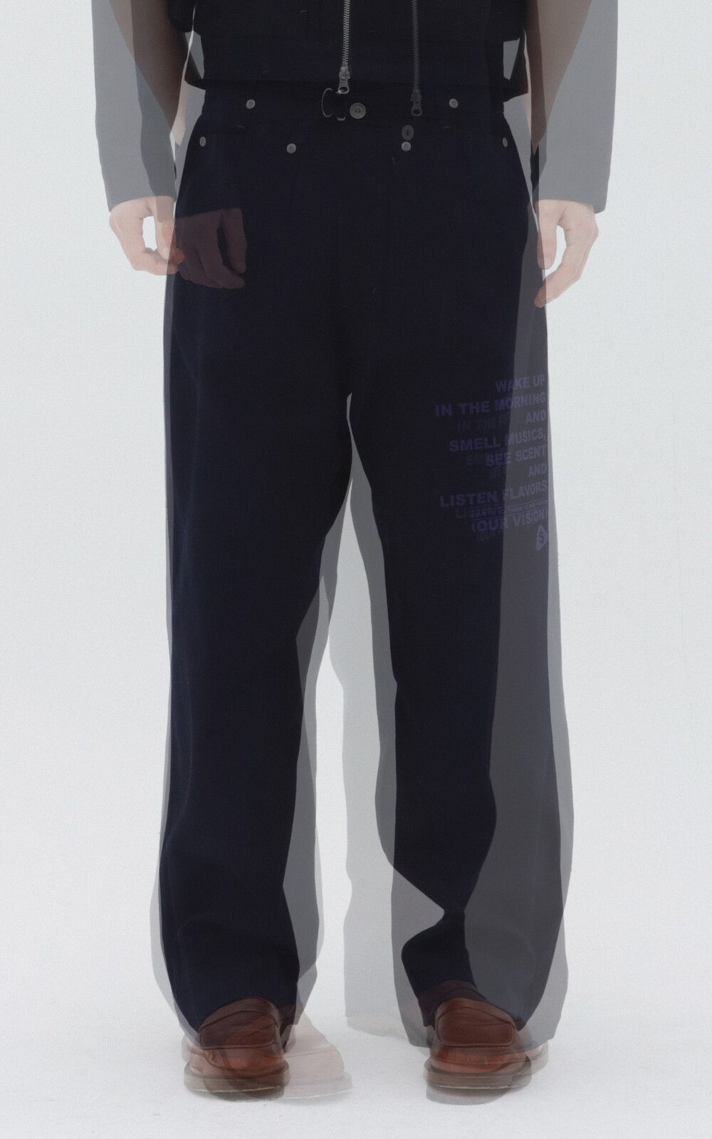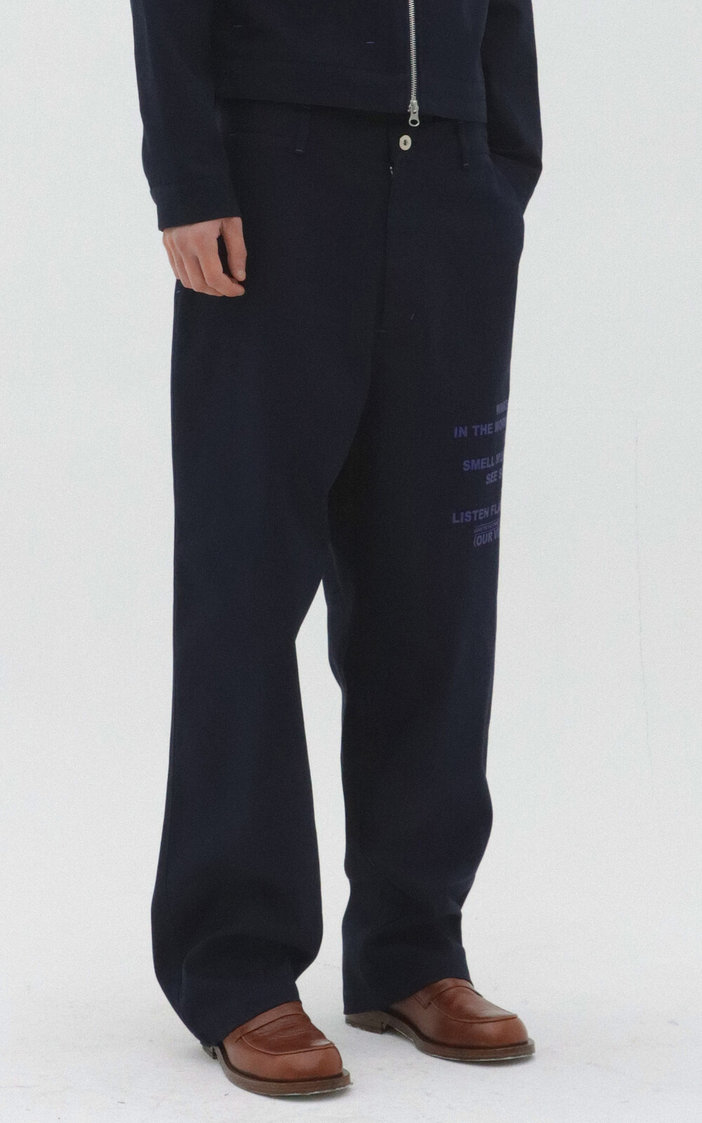 왼쪽 허벅지 레터링 프린팅.(프린팅 : 실크 스크린)
